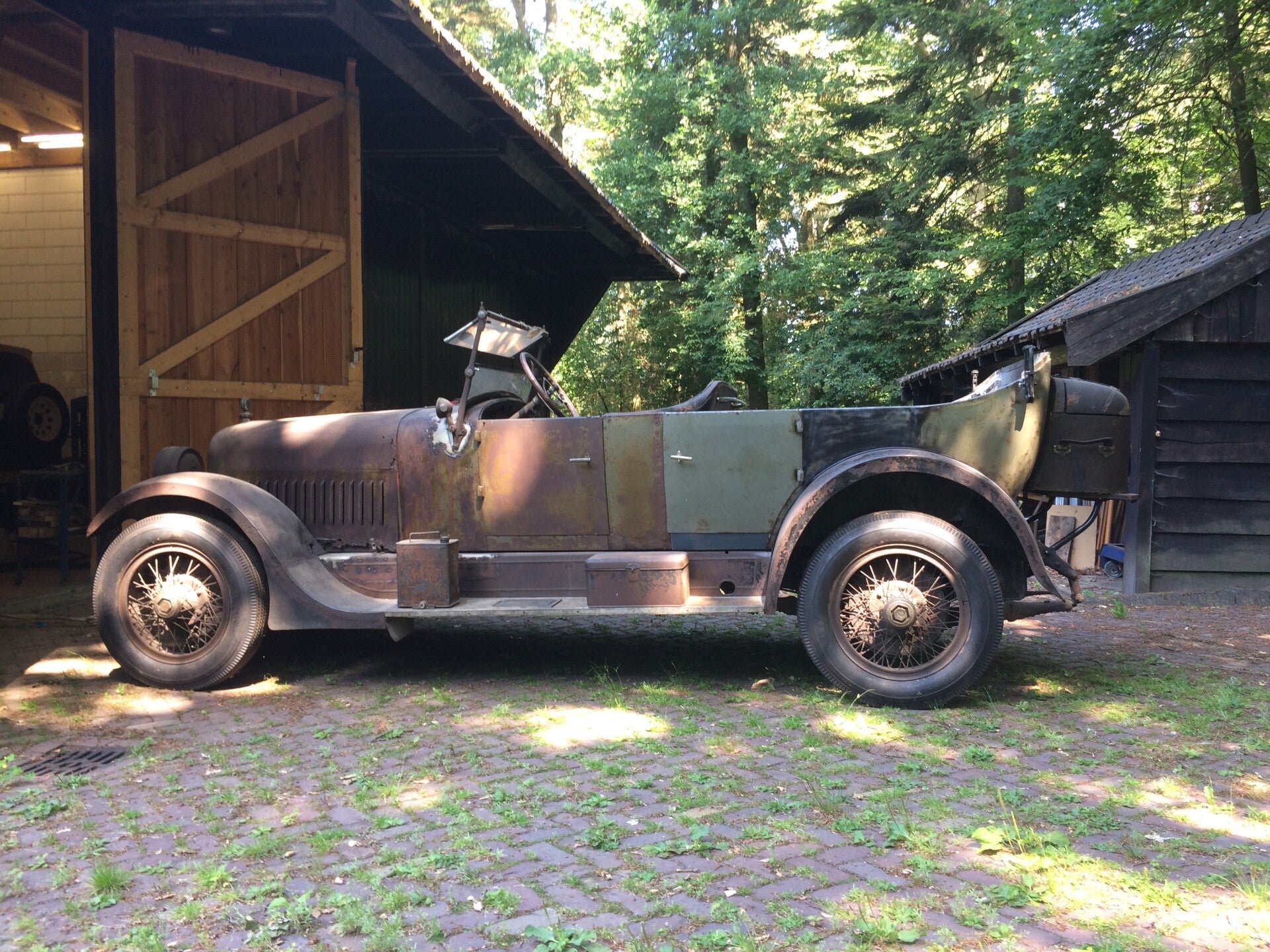 Besloten is om de auto technisch te restaureren maar zoveel mogelijk van het patina van de carrosserie te behouden. Bij de demontage van de auto werd duidelijk dat de motor muurvast zat en de essenhouten constructie van de carrosserie geheel moest worden vervangen. Daar waar mogelijk hebben we nieuw blik onder het bestaande plaatwerk geschoven en met puntlassen bevestigd. Het inwendige van de motor is van kilo’s vliegroest bevrijd en voorzien van nieuwe kleppen en zuigerveren. De originele gegoten krukaslagers konden opnieuw worden afgesteld middels het selectief verwijderen van vulplaatjes. Bijna alle andere onderdelen hadden eveneens serieuze aandacht nodig: de radiateur is weer waterdicht gemaakt, we hebben nieuwe remtrommels voor de achteras gedraaid, het stuurhuis, de versnellingsbak, de koppeling, de vooras zijn gereviseerd, de lekke benzinetank gesoldeerd en de dashboardmeters hersteld of vervangen.